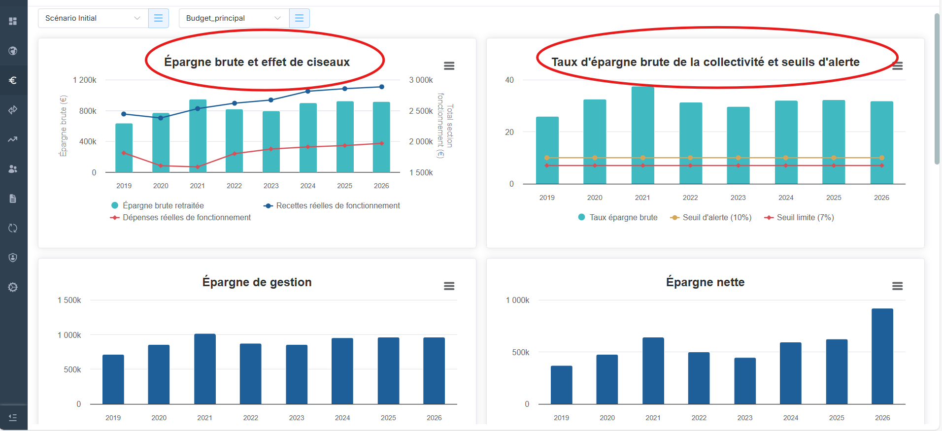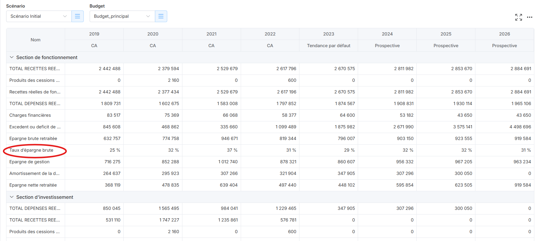 Vous pouvez retrouver le taux d'épargne brute dans les onglets suivants :