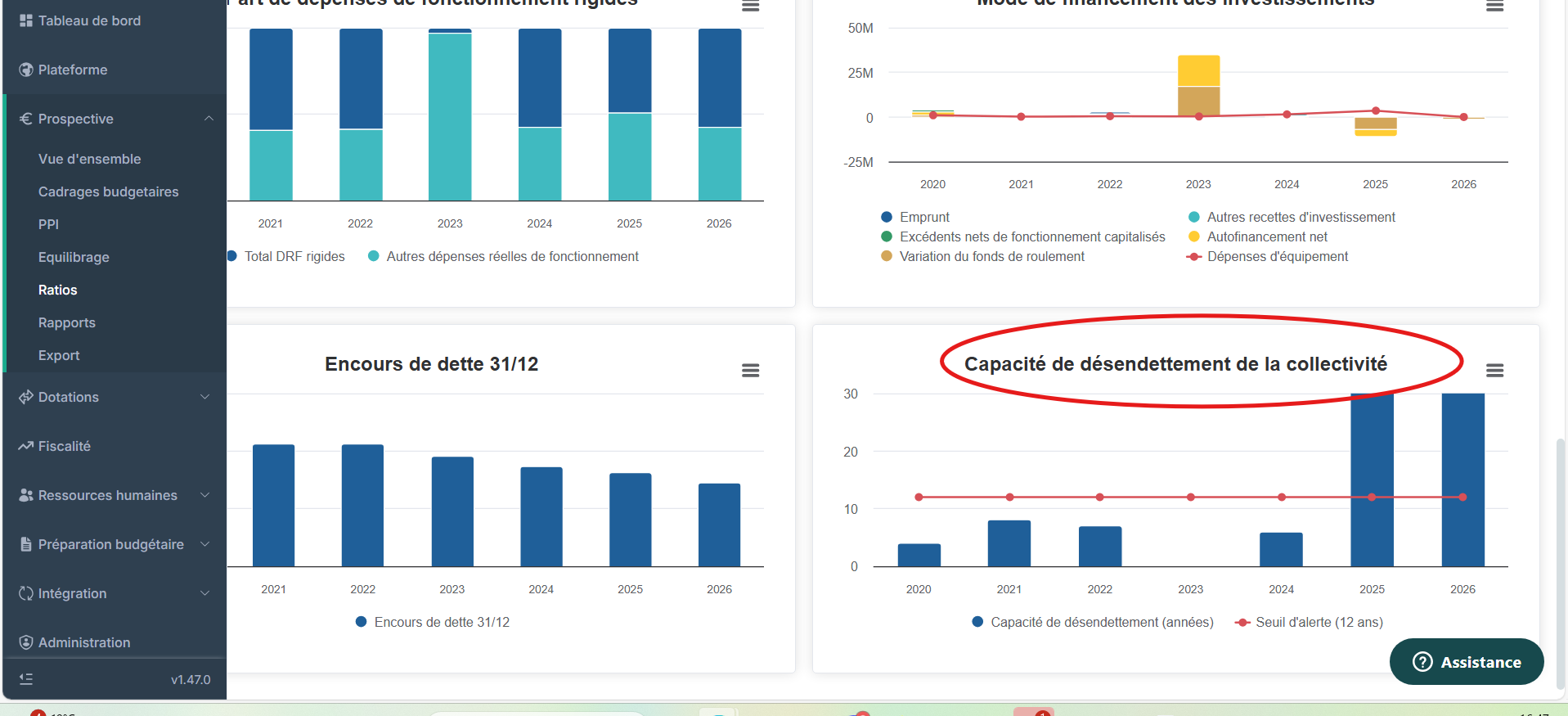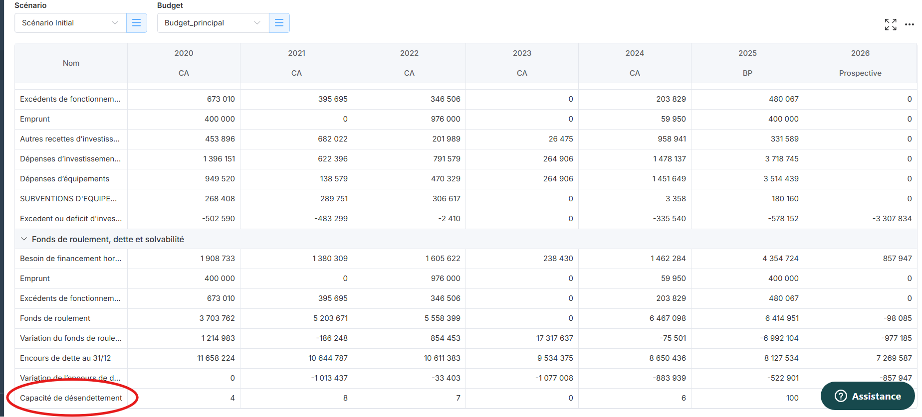 Vous pouvez retrouver la capacité de désendettement dans les onglets suivants :