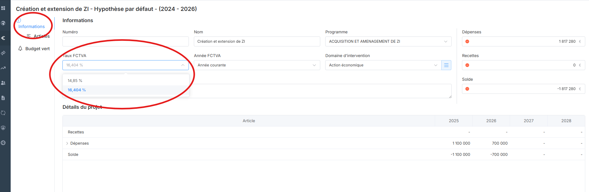 - Sélectionnez le taux de FCTVA dans l'onglet "Informations" du module "PPI".