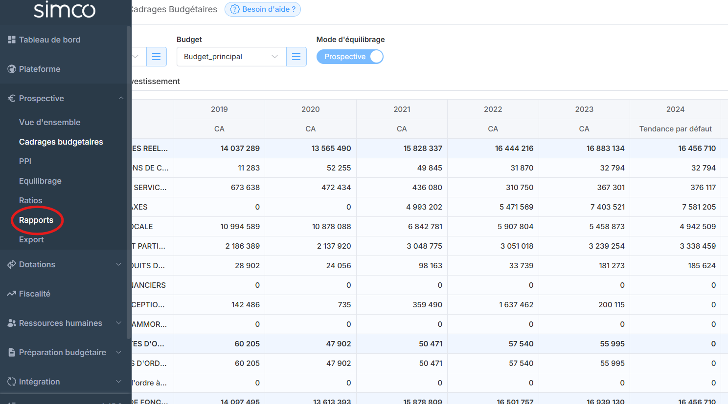 Pour cela, dans la barre latérale du module "Prospective", cliquez sur "Rapports".