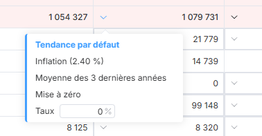 Vous pouvez définir plusieurs tendances pour un même chapitre. Dans ce cas la première tendance s'appliquera chaque année jusqu'à rencontrer l'année où une seconde tendance aura été définie.
